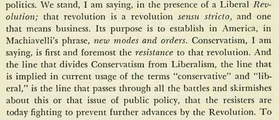 Hirschman finds that in the Anglosphere, conservative appeals to jeopardy focus on the tension between liberty and solidarity. You can see that in some of the uses of “knowing what time it is.” Reaboi warns about a coming tyranny, for instance. In general, though, I think the hard right presents the jeopardy facing Americans as an imposition on liberty, but something more: something cultural and even civilizational in scope. They imagine a progressive managerial class presiding over the ruins of the West.